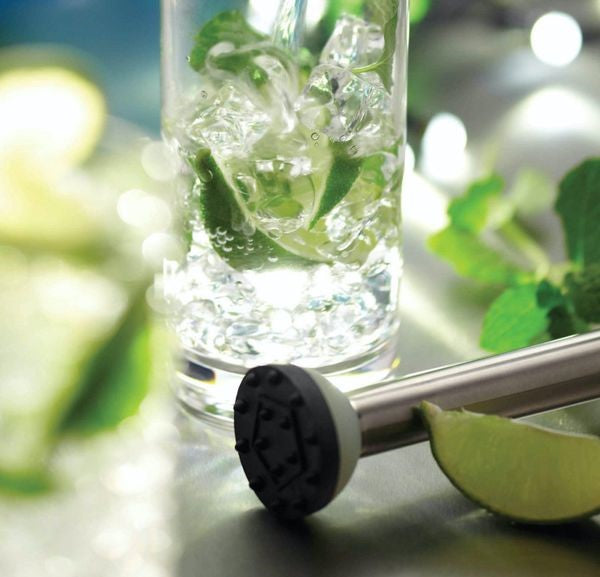 Its rows of silicone teeth make light work of bruising mint leaves for mint juleps, mashing limes for Caipirinhas or muddling sugar cubes for an Old Fashioned. Better still, they won't scratch or damage your best cocktail shaker or mixing glasses.