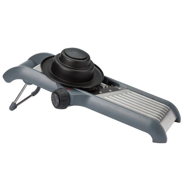 Prep Works Dial & Slice Chef's Mandoline by Progressive offers 4 slicing thicknesses and both thick and think julienne options. The guide comes with stainless steel prongs to securely hold your produce when slicing. Just when you think it couldn't get any better, it's also dishwasher safe! Multiple slices and cuts in seconds.
