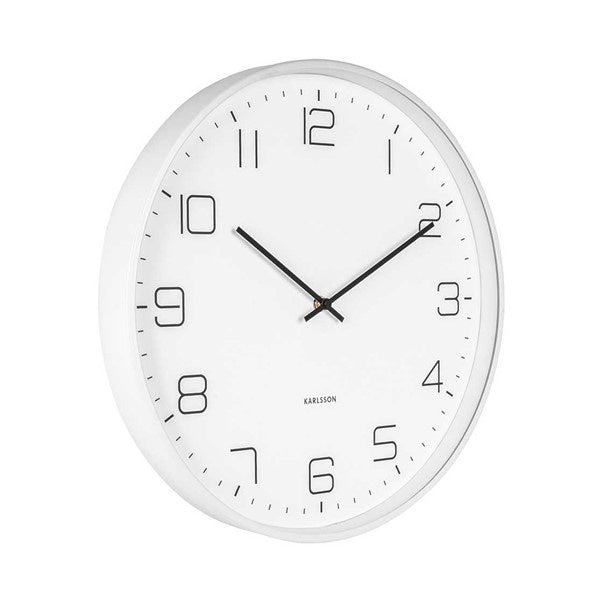 Featuring a matte white face & frame, black numbers & hands plus a glass lens.