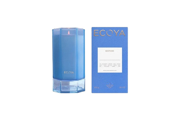 Encased in a sculptural six-sided coloured cut glass jar, the Keepsake Candle is designed to be as timeless as the memories it evokes. With fragrance notes inscribed on the front, it invites you to choose by instinct - what resonates, what lingers, what feels like home. Personalise it with a name, a moment, a sentiment.