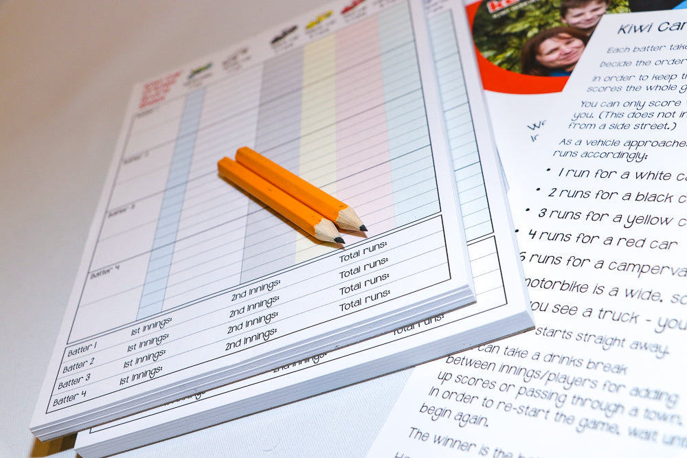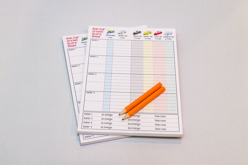 Comes with everything you need for Car Cricket including a cricket score sheet, two pencils, an instruction sheet and a sturdy glove compartment size box to store it all.