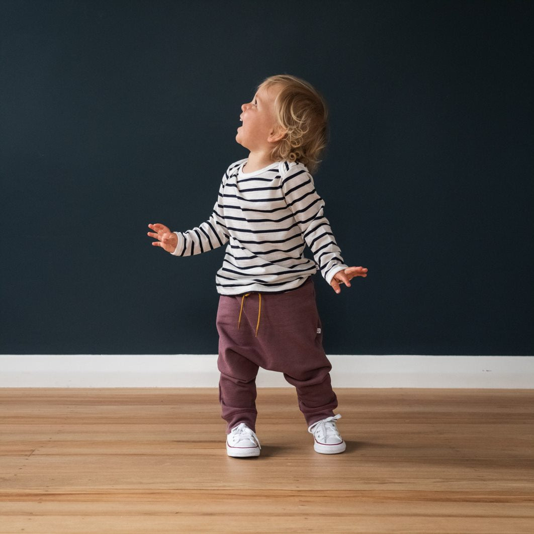 Designed to be worn as a lounge pant, our super comfy slouch tracky offers casual cool dressing for any active mini mello. designed with freedom of play in mind