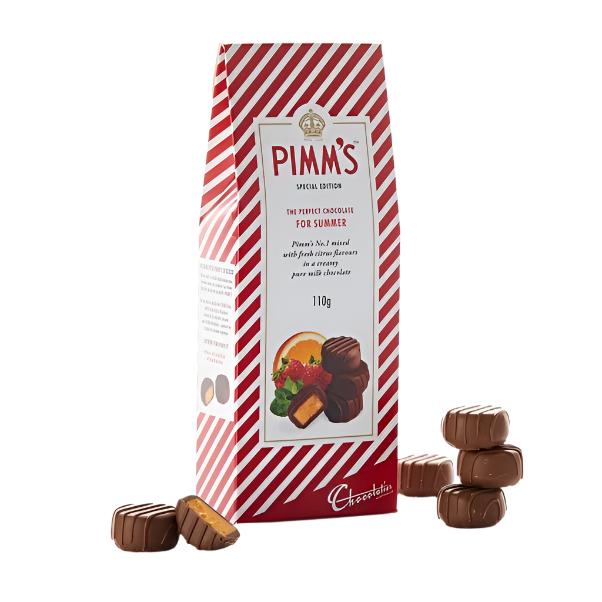 Pimm's no. 1 is mixed with fresh citrus flavours in a creamy pure milk chocolate.