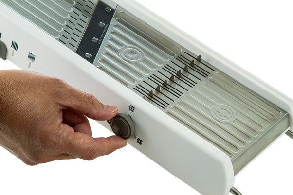 The PL8 Professional Cubing Mandoline is the result of over a decade of slicing expertise, designed to make food preparation in the professional or home kitchen more efficient than ever. The Professional Cubing Mandoline features the following: