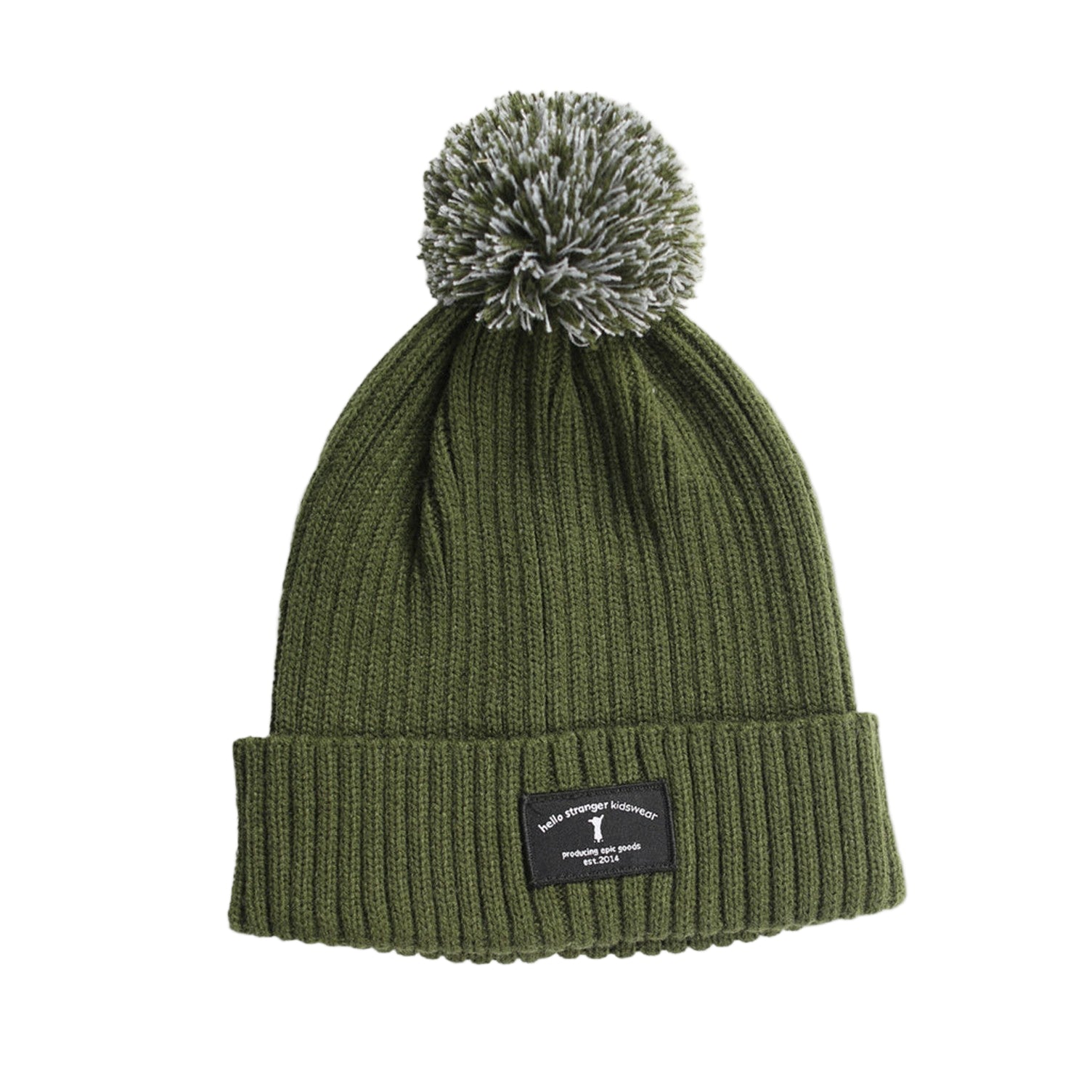A beautiful lush cable knit beanie featuring a single pom pom and a centered logo patch.