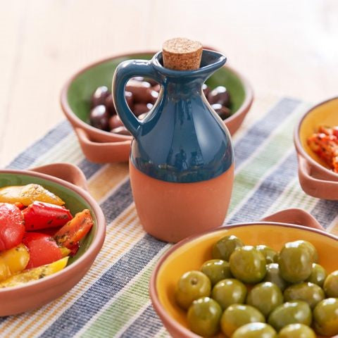 This beautiful ink blue glazed terracotta oil drizzler is one of the many products in our Sintra collection, inspired by the richness of the architecture and surrounding landscape of Sintra, in Portugal. Perfect to hold olive oil, balsamic or any dressing of your choice.
