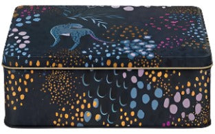 This gorgeous deep rectangular tin is a wonderful storage solution for your home! By designer Sara Miller it includes amazing gold detailing.