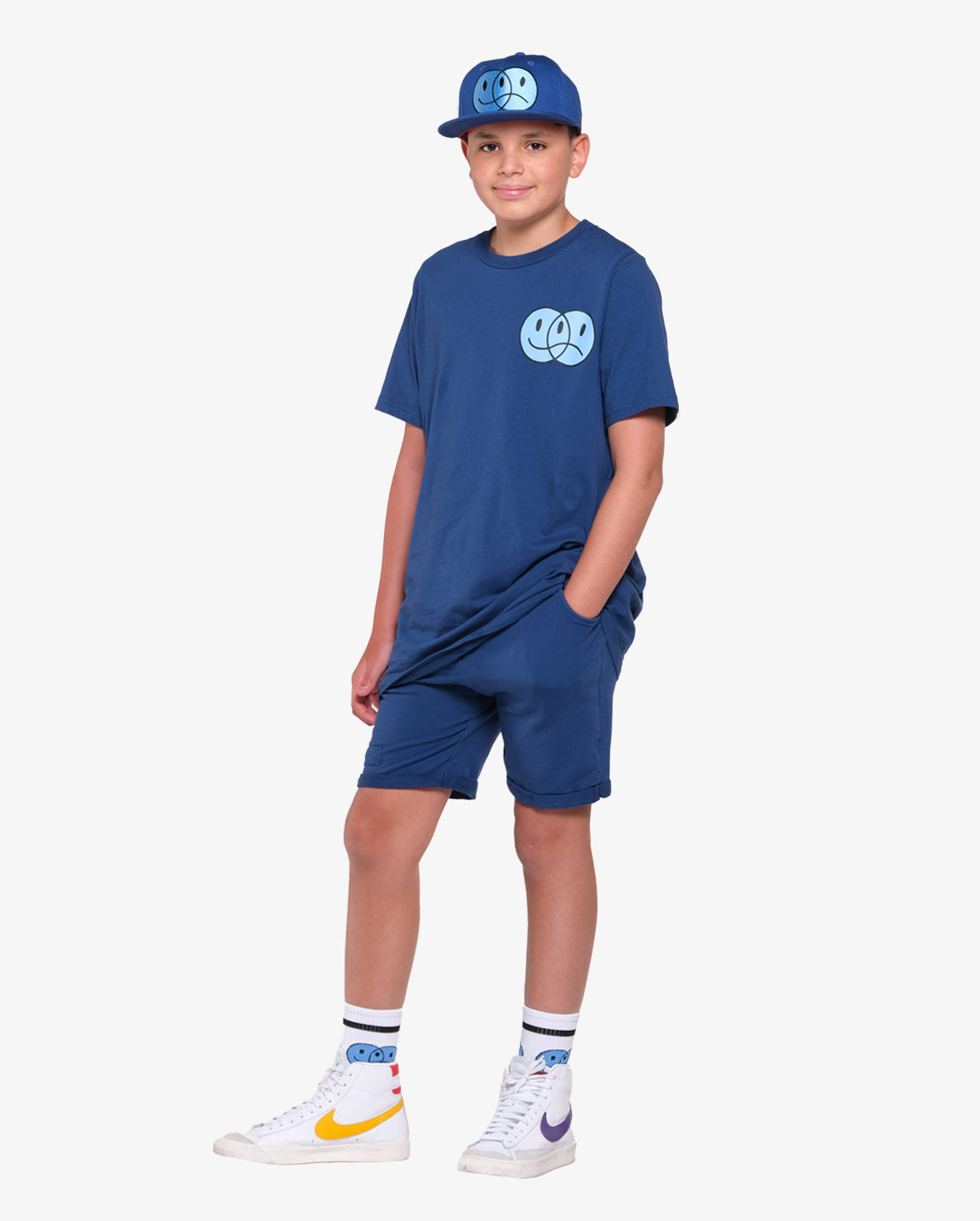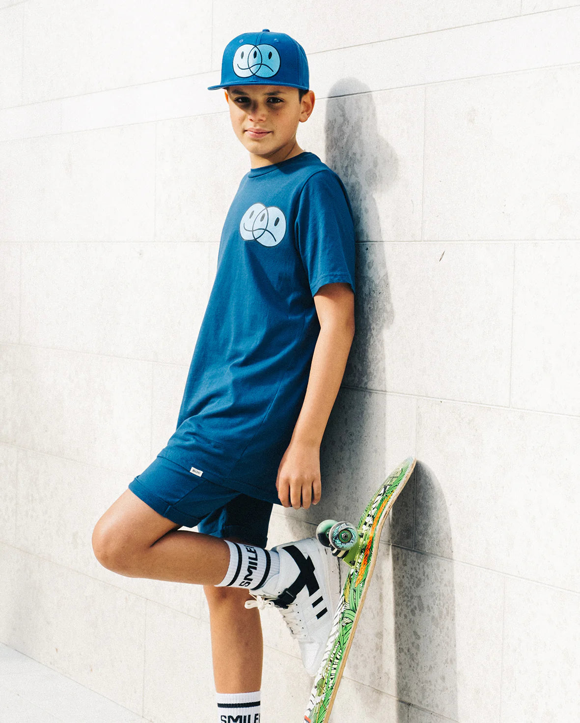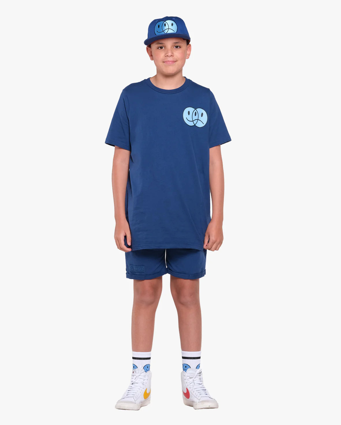 The Band of Boys Happy happy sad tee is cool and casual with a more understated vibe. This tee has a straight hem and has been cut to be the perfect length and width so you don’t have to upsize. Made of soft jersey cotton this cool tee has been made to fit true to size with a wider and relaxed, longer fit. Models are age 12 and are wearing size 12.