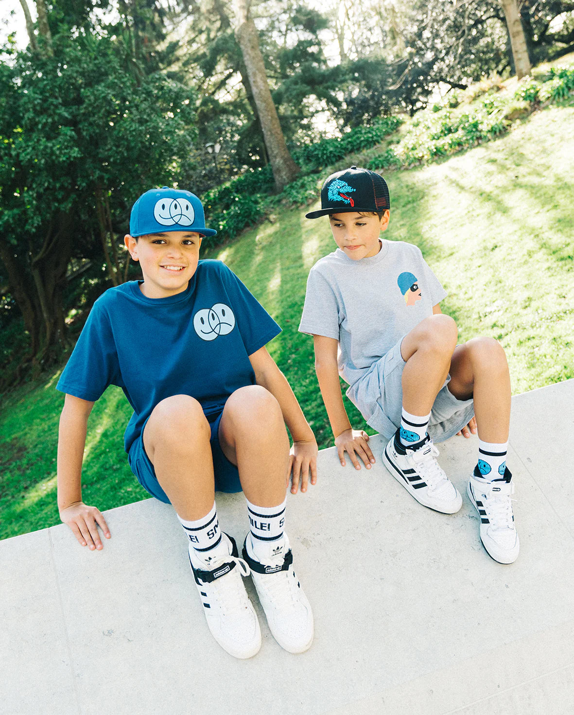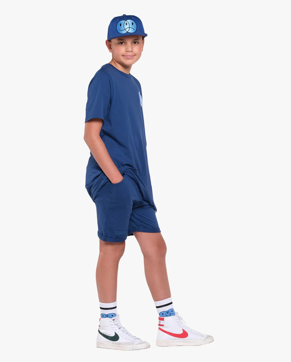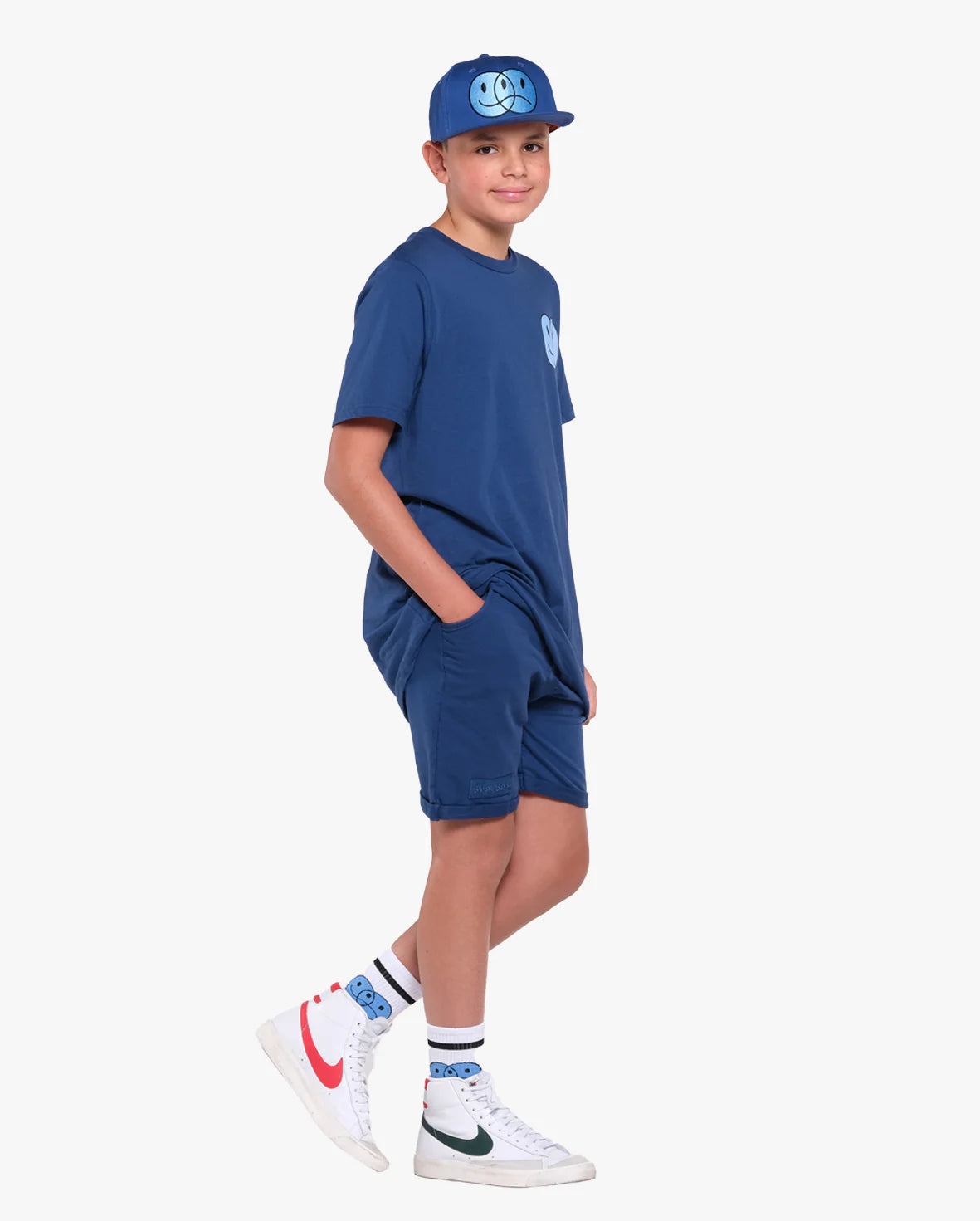 The Band of Boys Happy happy sad tee is cool and casual with a more understated vibe. This tee has a straight hem and has been cut to be the perfect length and width so you don’t have to upsize. Made of soft jersey cotton this cool tee has been made to fit true to size with a wider and relaxed, longer fit. Models are age 12 and are wearing size 12.