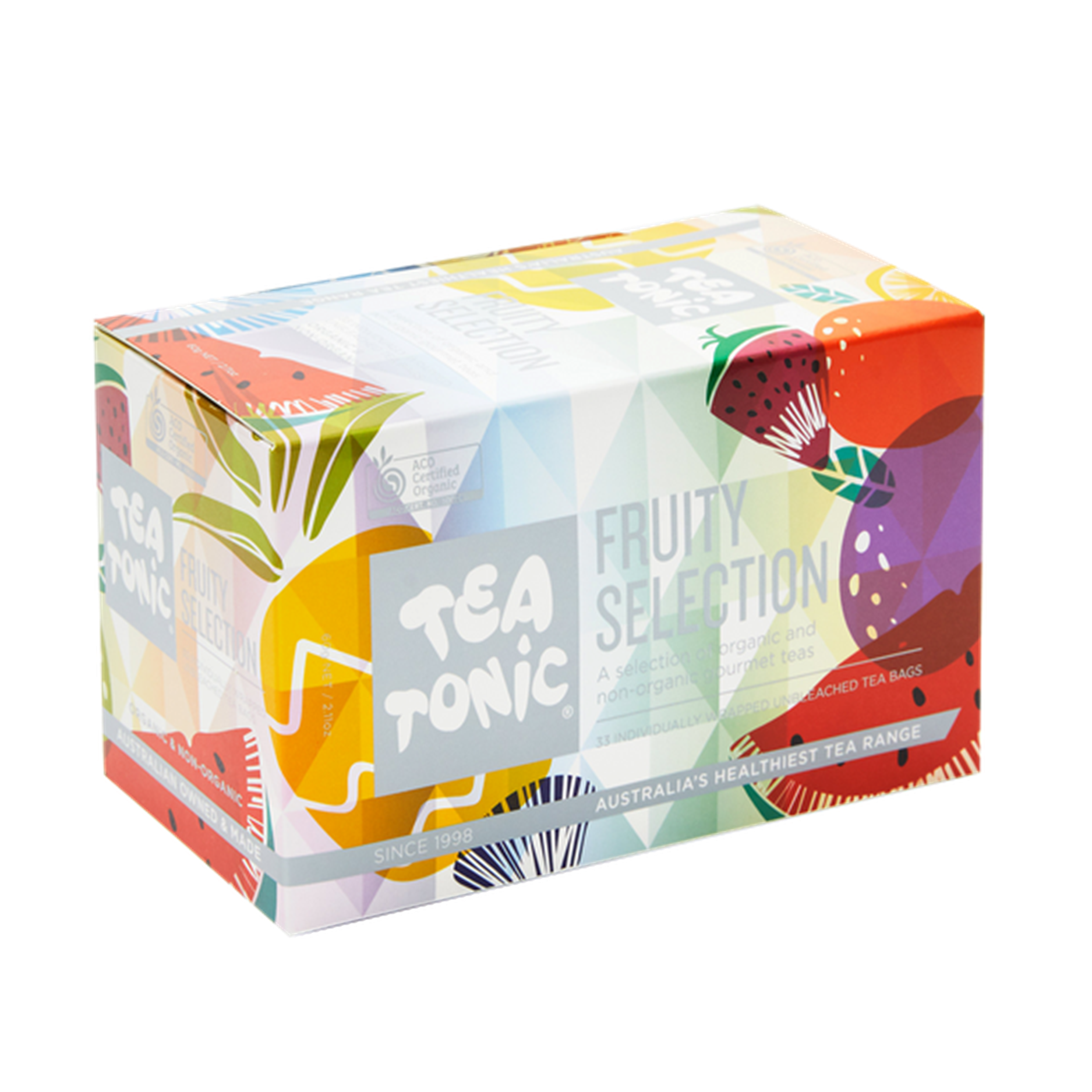 Discover a burst of flavours! The Fruity Selection Box full of 33 teabags combines our favourite fruity and fun flavours, from a sweet passionfruit True Calm Tea to the subtly sweet & palatable Berry Green Tea. Each sip transports you to a world of pure refreshment. Elevate your tea experience with Tea Tonic's Fruity Tea Selection Sampler Box today. Perfect for gifting or indulging in a well-deserved moment of bliss. Order now and embark on a fruity tea adventure!