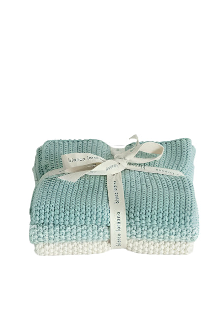 Knitted washcloths made from 100% soft organic cotton available in a set of 3 duck egg tones.